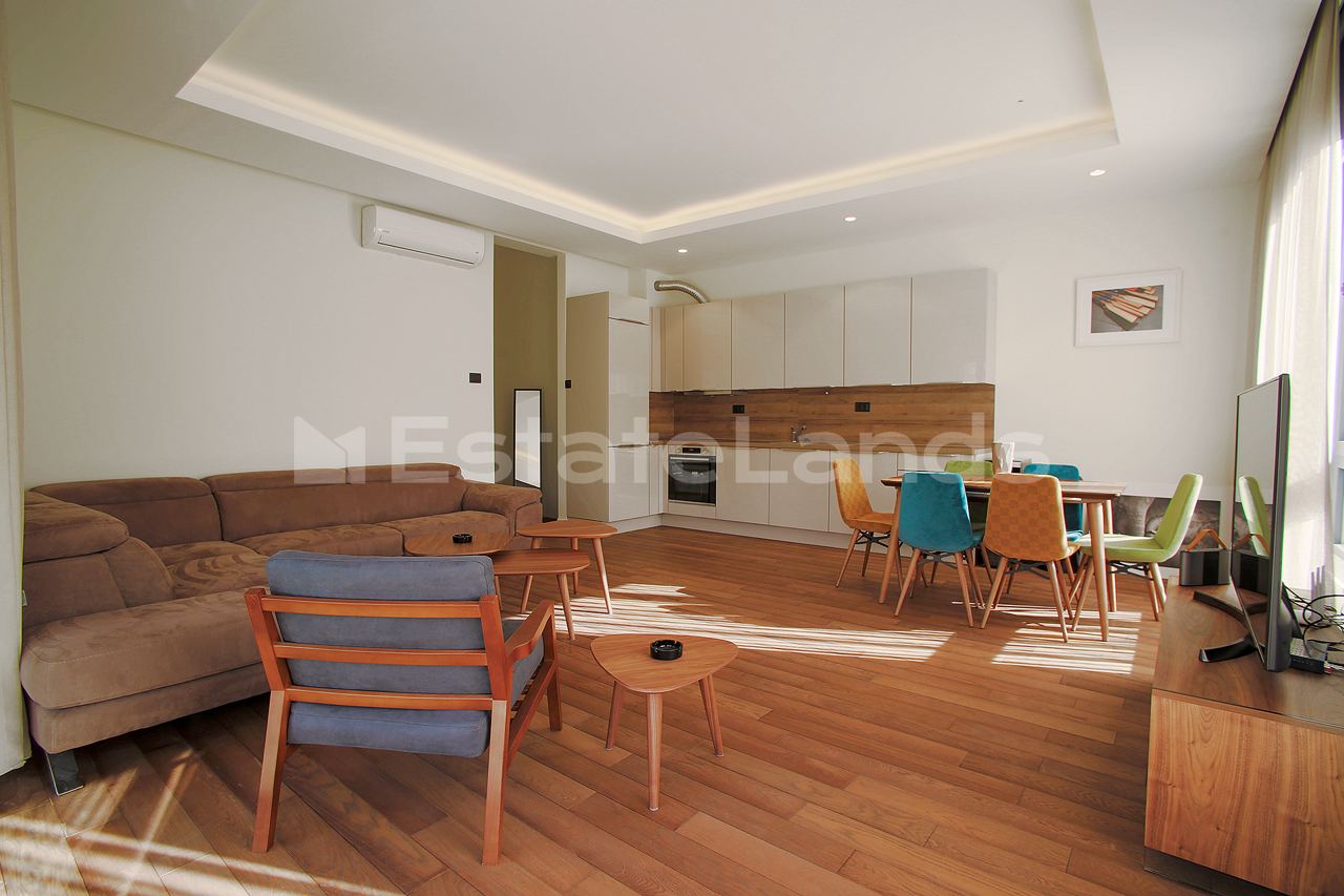 Two bedroom apartment for rent. Unique location: the building is practically in Porto Montenegro, 500 metres to schools, not on the mountain, 10 metres from the house central park. Modern building. The apartment has everything you need for life. Notarial agreement Payment terms: - First month's payment and 2 refundable deposits - Utilities are paid separately Price: - For a year: 2500 €/month - Until June: 1800 €/month It is possible with small pets
